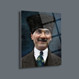 Atatürk Portre Cam Tablo – UV Baskılı Temperli Cam Duvar Sanatı | Derin ve Anlamlı Bakışlarla Özel Tasarım - ATA003